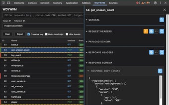 ส่วนขยายนี้มีความสามารถในการค้นหาขั้นสูงสำหรับเนื้อหาการตอบสนองและรวมเครื่องมือสำหรับการวิเคราะห์การตอบสนอง นอกจากนี้ยังรองรับการสร้างสคีมาของ TypeScript สำหรับรูปแบบคำขอและการตอบสนอง ทำให้กระบวนการพัฒนาง่ายขึ้น โดยรวมแล้ว WDYWFM เป็นเครื่องมือที่มีค่าสำหรับนักพัฒนาที่ต้องการเพิ่มประสิทธิภาพการทำงานและปรับปรุงความเข้าใจเกี่ยวกับคำขอเครือข่าย
